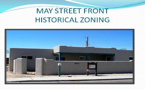 THE FRONT IS DESIGNED TO MEET THE LAS CRUCES HISTORIC DISTRICT REQUIREMENTS. MODIFIED CONTEMPORARY PUEBLO |