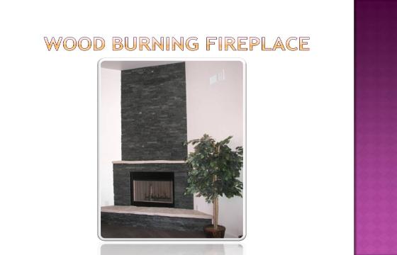 | CORNERED WOOD BURNING FIREPLACE FACED WITH CULTURED STONE HEARTH AND MANTEL ARE FLAGSTONE |