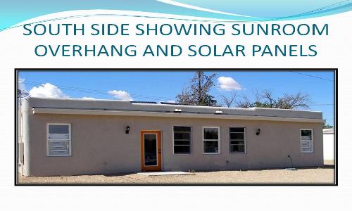 | THE SOUTH SIDE HAS A SUNROOM AND AND TWO BEDROOM WINDOWS. THE OVERHANG IS DESIGNED SO THE SUN ENTERS ONLY FROM ABOUT MID-OCTOBER TO LATE MARCH |
